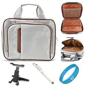 Carry and protect your ASUS Transformer Prime Android 10.1-inch Tablet in style with this nylon carrying case. This ultra lightweight and stylish laptop case made with hi-grade dingy lining imitated leather and Well-knit zippers. Provides your ASUS Transformer Prime Android 10.1-inch Tablet maximum protection against everyday wear and tear. Features accessory pockets for business cards, chargers, data cables, and pens or pencils and comes in a stylish dual color nylon design. INCLUDES!!! Removable Adjustable Shoulder Strap with a Chrome Metal Latch. Peripheral size: Measures 10.5" x 8" x 1.5". Fits any laptop case with 10.2" or smaller. Package also includes a The Car Headrest mount attaches your Tablet to the car's headrest posts and allows 360 degree rotation for landscape and portrait viewing with 45° horizontal and lateral tilt. The custom protective holder fits your Tablet for easy access to buttons and ports. Package also includes a Executive White Stylus Pen with Laser Pointer and LED Light. Durable, compact and versatile design. 3 in 1: Stylus Point to navigate on Resistive Screens, White LED light and Red Laser Pointer. 2 Simple Buttons, making it convenient: One for Red Laser Beam and the other for LED light. Twist barrel for Stylus Tip or Ball Pen. Batteries are included .INCLUDES!!! SumacLife TM Wisdom*Courage Wristband