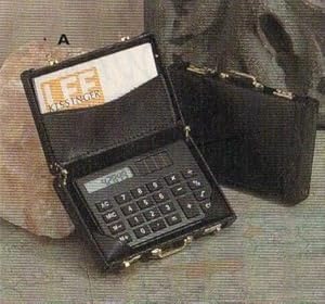 Ingeniously detailed mini-briefcase holds a calculator and business cards. Vinyl case. 4 1/2" x 2 3/4" x 3/8" high.